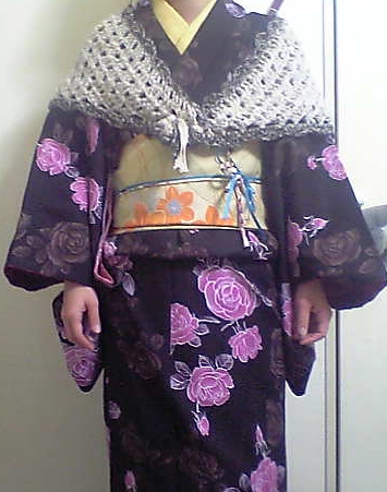 KIMONO姫路線を意識して、お揃いのショール&クロシェをあわせました。ちょっともっさりしてますが(笑)