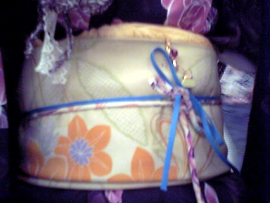 ポリエステルの薔薇の袷(3800円)と四天王寺さんで買った中古袋帯(500円)。