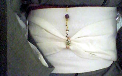 殆ど見えませんが、帯揚はポリの風呂敷を切って繋いでいます。白と紫のグラデになってるもの。