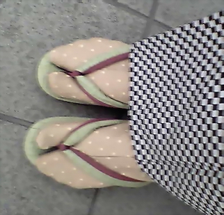 草履は本町で1600円で買ったもの。いわゆるウレタンの安物ですが、サイズも小さく、お気に入り。