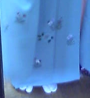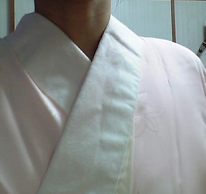 横。衣紋はこれぐらいだけど、キモノが重くて前にずれやすいので、始めはちょっと抜き気味に。