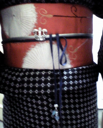 帯締めは合皮の紐。そこにみなせっちの飾り+300均で買った王冠ブローチをつけていますが、だれっとなっているので残念な感じに。